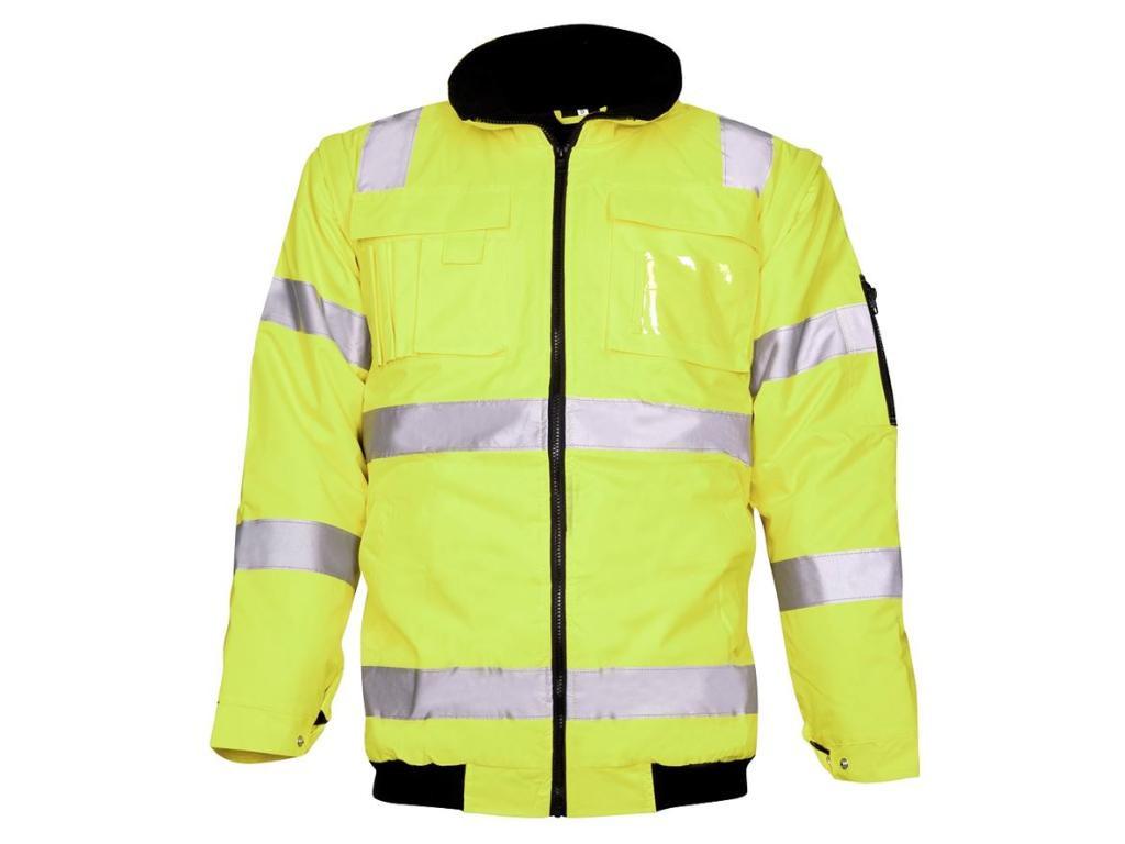 Jól láthatósági vízálló dzseki praktikus rejtett kapucni lecsatolható ujjakkal, fényvisszaverő elemekkel, leragasztott varratokkal. Ez a funkció hasznos lehet a napi munkavégzés során.