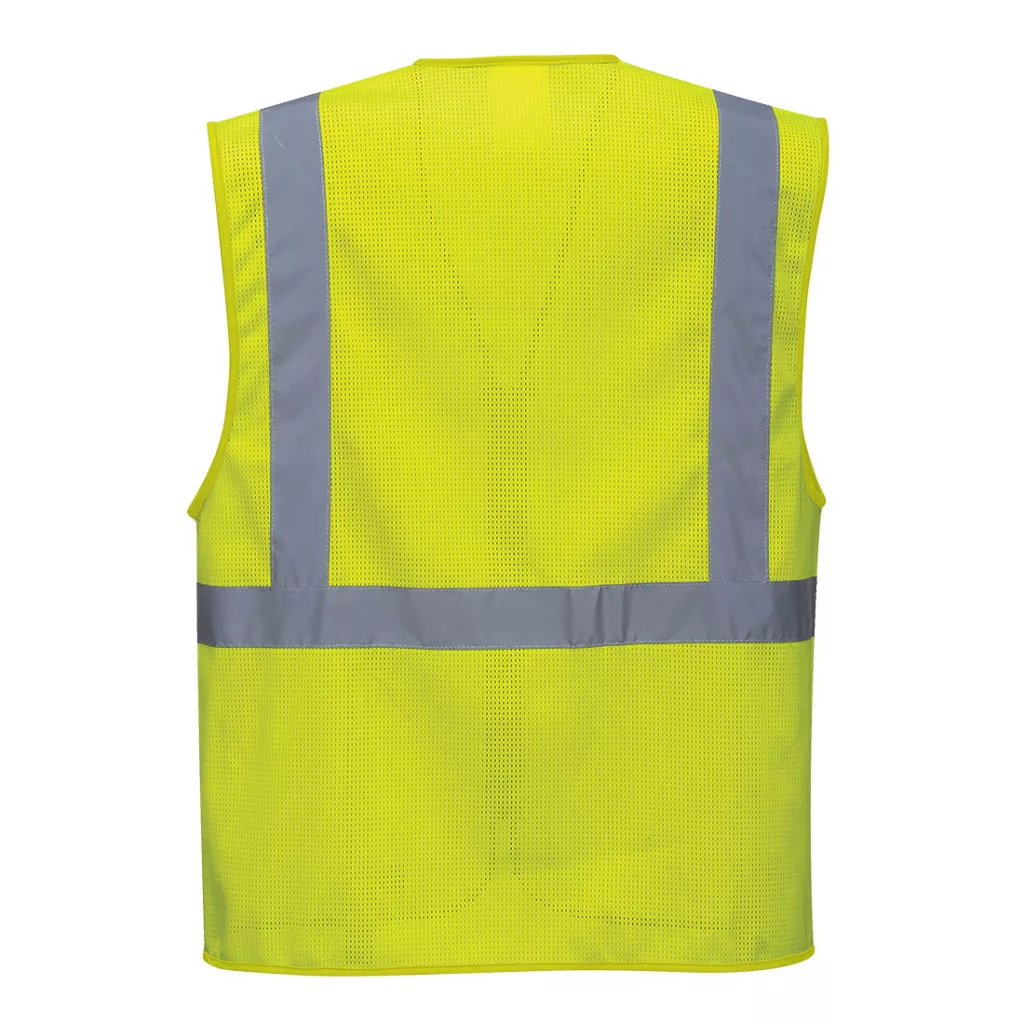 MeshAir technológia garantálja a kiváló légáramlást viselőjének. A MeshAir alapanyag megfelel az EN ISO 20471 szabványnak. A mellény további funkciói: praktikus zsebek, ID kártya tartó, rádió hurok, cipzáras záródás, lélegző hálós szövet. Ez a kialakítás segíti a felhasználó hatékony munkáját. Az EN ISO 20471 szabvány biztosítja, hogy a mellény kiváló láthatóságot nyújt, így növeli a viselő biztonságát a munkakörnyezetben, különösen rossz látási viszonyok között. A praktikus zsebek nem csak apró eszközök tárolására alkalmasak, hanem könnyen hozzáférhetővé teszik a szükséges munkaeszközöket. Az ID kártya tartó és a rádió hurok megkönnyíti az azonosítók és kommunikációs eszközök használatát a munka során. A lélegző hálós szövet pedig hozzájárul a komfortérzethez, szabályozva a testhőmérsékletet és csökkentve az izzadást hosszabb viselés esetén.