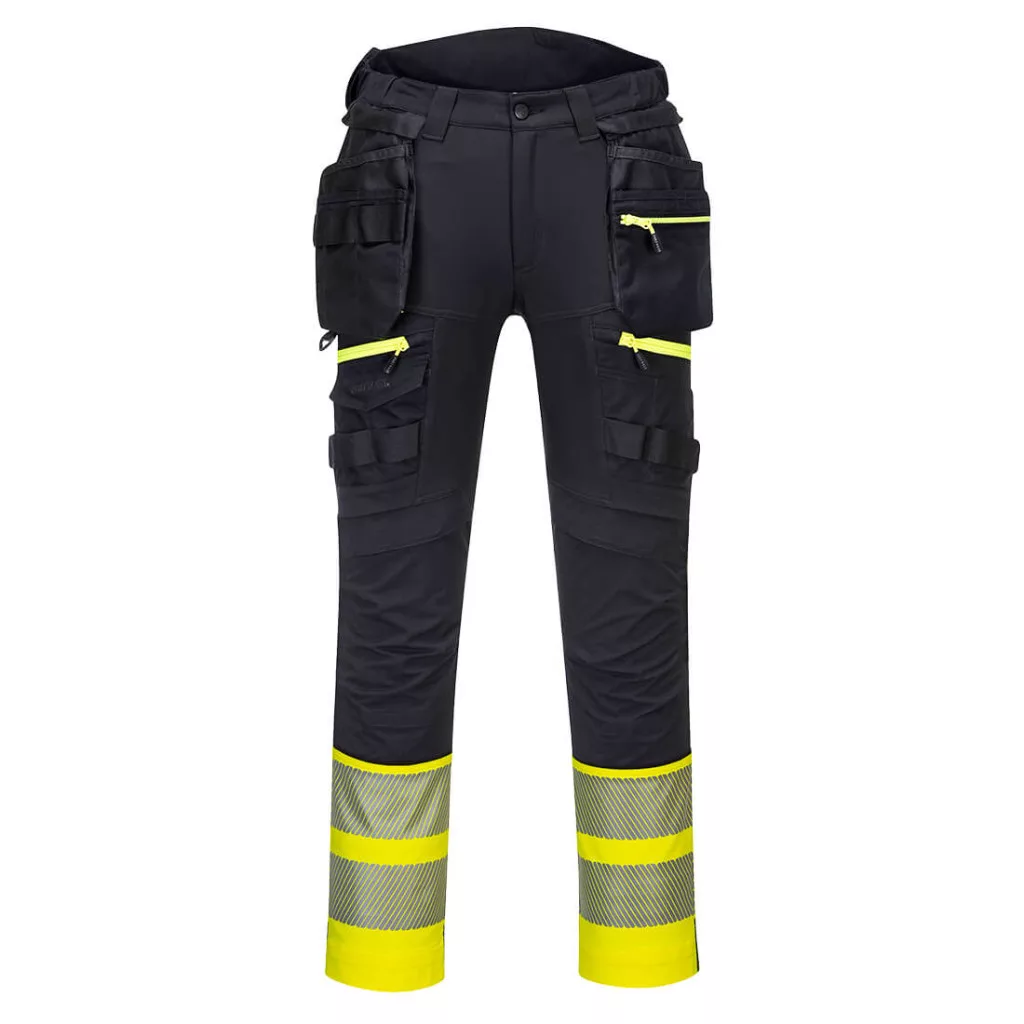 A DX4 lengőzsebes nadrág okosan megalkalmazásra készült, a dinamikus 4X stretch anyag célzott elhelyezésével biztosítja a maximális mozgástartományt munka közben. Ezek a lengőzsebes nadrágok magasan emelkedő hátsó derékpánttal rendelkeznek, oldalt elasztikusak, ezzel biztosítva a védelmet minden pozícióban. Előre hajlított, felülről tölthető, állítható térdvédő zsebek, nagyméretű elülső zsebek és többfunkciós cipzáras combzsebek biztonságos tárolást kínálnak. Háromszoros varrás a maximális tartósság érdekében. 4 irányban nyúló anyag a nagyobb mozgásszabadság és a kényelem érdekében, Könnyű, rugalmas HiVisTex Pro szegmentált fényvisszaverő szalag a jobb láthatóság érdekében, 16 sokoldalú, praktikus tárolózsebbel, Colstok tartó zseb, Háromszoros varrások az extra tartósságért, Sokoldalú lecipzározható lengőzsebek, 40+ UPF minősítésű alapanyag, amely az UVsugarak 98%át blokkolja. EN ISO 20471 szabvány szerint 25 mosásra minősítve, Új kialakítás, Slim fit design a kivételes komfortért, Felső nyílású térdzsebek a gyors és könnyű hozzáférésért, Oldalt gumírozott derék az egyedülálló kényelemért, CE minősítés, Regisztrált európai közösségi design, Megfelel az EN ISO 20471 szabványnak, Azonosítókártya tartó az igazolványok megjelenítéséhez, Hőillesztett, szegmentált fényvisszaverő szalag hozzáadott jól láthatóságért, Rejtett telefontartó zseb, Egy pár díjmentes térdpárna a DX4 derekas nadrághoz. A rugalmasságot biztosító 4 irányban nyúló anyag lehetővé teszi, hogy a nadrág igazodjon a mozdulatokhoz anélkül, hogy korlátozná a mozgást, így ideális olyan munkakörnyezetben, ahol folyamatos mozgásra van szükség. A magasan emelkedő, elasztikus derékpánt extra védelmet nyújt, megakadályozva a hideg beszivárgását és kényelmes illeszkedést biztosít hosszú munkanapokon is. Az előre hajlított és állítható térdvédő zsebek lehetővé teszik a térdvédők precíz és stabil elhelyezését, ami különösen fontos a térdet igénybe vevő munkák során. A 40+ UPF minősítésű anyag az erős napfény elleni védelmet fokozza, így a nadrág kültéri használatra is kiválóan alkalmas. A HiVisTex Pro szegmentált fényvisszaverő szalag nemcsak a biztonságot növeli, de könnyen mozgatható, nem akadályozza a munkavégzést, miközben megfelel a legmagasabb láthatósági szabványoknak. Ez a nadrág tökéletes választás azoknak, akik kivételes kényelmet, tartósságot és biztonsági funkciókat keresnek egyetlen, jól átgondolt munkaruházati darabban.