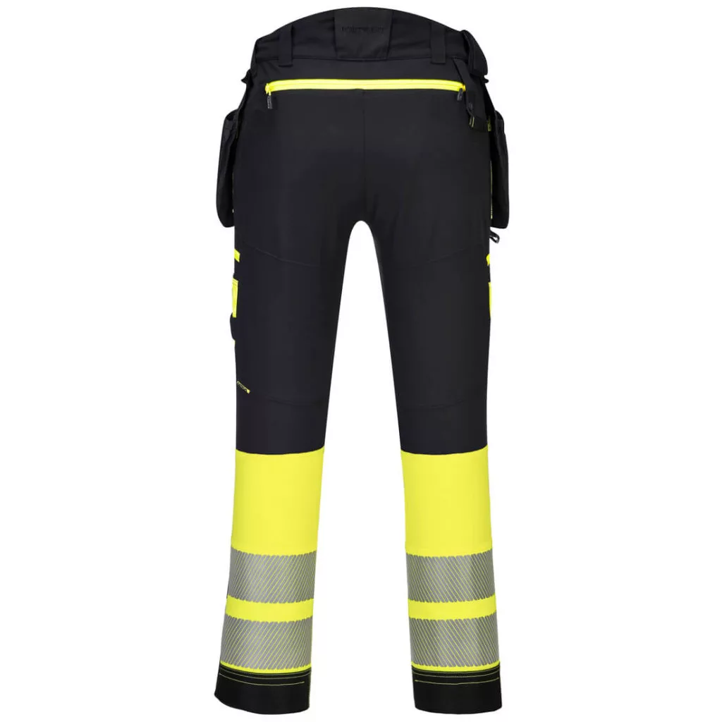 A DX4 lengőzsebes nadrág okosan megalkalmazásra készült, a dinamikus 4X stretch anyag célzott elhelyezésével biztosítja a maximális mozgástartományt munka közben. Ezek a lengőzsebes nadrágok magasan emelkedő hátsó derékpánttal rendelkeznek, oldalt elasztikusak, ezzel biztosítva a védelmet minden pozícióban. Előre hajlított, felülről tölthető, állítható térdvédő zsebek, nagyméretű elülső zsebek és többfunkciós cipzáras combzsebek biztonságos tárolást kínálnak. Háromszoros varrás a maximális tartósság érdekében. 4 irányban nyúló anyag a nagyobb mozgásszabadság és a kényelem érdekében, Könnyű, rugalmas HiVisTex Pro szegmentált fényvisszaverő szalag a jobb láthatóság érdekében, 16 sokoldalú, praktikus tárolózsebbel, Colstok tartó zseb, Háromszoros varrások az extra tartósságért, Sokoldalú lecipzározható lengőzsebek, 40+ UPF minősítésű alapanyag, amely az UVsugarak 98%át blokkolja. EN ISO 20471 szabvány szerint 25 mosásra minősítve, Új kialakítás, Slim fit design a kivételes komfortért, Felső nyílású térdzsebek a gyors és könnyű hozzáférésért, Oldalt gumírozott derék az egyedülálló kényelemért, CE minősítés, Regisztrált európai közösségi design, Megfelel az EN ISO 20471 szabványnak, Azonosítókártya tartó az igazolványok megjelenítéséhez, Hőillesztett, szegmentált fényvisszaverő szalag hozzáadott jól láthatóságért, Rejtett telefontartó zseb, Egy pár díjmentes térdpárna a DX4 derekas nadrághoz. A rugalmasságot biztosító 4 irányban nyúló anyag lehetővé teszi, hogy a nadrág igazodjon a mozdulatokhoz anélkül, hogy korlátozná a mozgást, így ideális olyan munkakörnyezetben, ahol folyamatos mozgásra van szükség. A magasan emelkedő, elasztikus derékpánt extra védelmet nyújt, megakadályozva a hideg beszivárgását és kényelmes illeszkedést biztosít hosszú munkanapokon is. Az előre hajlított és állítható térdvédő zsebek lehetővé teszik a térdvédők precíz és stabil elhelyezését, ami különösen fontos a térdet igénybe vevő munkák során. A 40+ UPF minősítésű anyag az erős napfény elleni védelmet fokozza, így a nadrág kültéri használatra is kiválóan alkalmas. A HiVisTex Pro szegmentált fényvisszaverő szalag nemcsak a biztonságot növeli, de könnyen mozgatható, nem akadályozza a munkavégzést, miközben megfelel a legmagasabb láthatósági szabványoknak. Ez a nadrág tökéletes választás azoknak, akik kivételes kényelmet, tartósságot és biztonsági funkciókat keresnek egyetlen, jól átgondolt munkaruházati darabban.