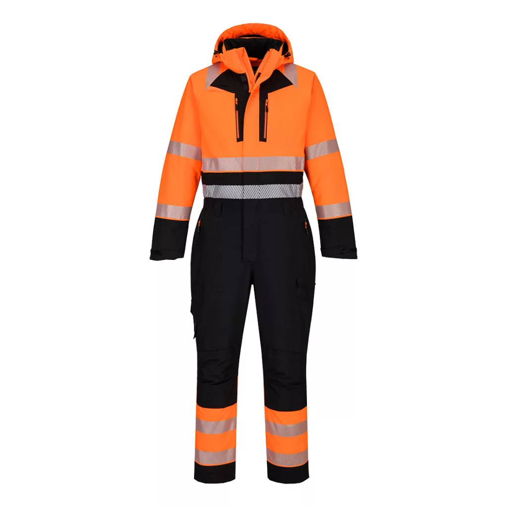 Prémium lélegző és szélálló alapanyaggal (mechanikai sztreccs tulajdonságokkal), a víz behatolását megakadályozó vízálló ragasztott varratokkal, rendkívül vízálló, PFAS-mentes Texpel Splash Eco szövetkikészítéssel (a víz lepereg a szövet felületéről), -40 °C-ig EN342 hideg elleni védelemmel, InsulatexPro béléssel (kiváló meleget biztosít anélkül, hogy felesleges súlyt adna hozzá), függőleges és vízszintes kapucni beállítással, a mellkason cipzáras zsebbel, vízálló cipzárakkal, 2 cipzáras oldalzsebbel, dupla szerszámtartó zsebbel, belső mellzsebbel, extra hosszú oldalsó láb cipzárral, tépőzáras, állítható mandzsettával, megerősített ágyék résszel, széles övtartóval, tökéletes komfortérzetet biztosító állvédő belső hajtókával, az elemek elleni védelem érdekében viharlebenyes elülső résszel, egyedi szabással, dupla varrásokkal, a szennyeződések ellen kontraszt panelekkel, hőillesztett, szegmentált fényvisszaverő szalaggal, az egyszerű hozzáférését kétutas cipzárral, oldalt gumírozott derékkal és két szintes térdvédő zsebekkel rendelkező jól láthatósági overál, amelyen a maximális vízálló védelem érdekében nincsenek vállvarratok.