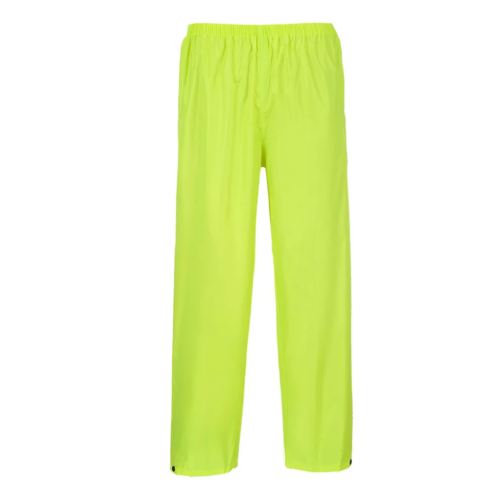 Praktikus és strapabíró 100% poliészter, PVC bevonatú esőnadrág, mely kiváló ár-érték arányt képvisel. Extra védelmet nyújtó ragasztott varrásokkal, gumírozott derékkal, patentos, állítható bokarésszel és extrém vízálló bevonattal rendelkezik. Szabása lehetővé teszi a munkaruha fölött történő viselését is. Oldalsó zsebe könnyű hozzáférést biztosítanak a munkanadrág oldalsó zsebeiben tárolt dolgainkhoz. Az S440 cikkszámú esődzsekivel, vagy S438 cikkszámú esőköpennyel egy szettet alkot. Ez a funkció hasznos lehet a napi munkavégzés során.