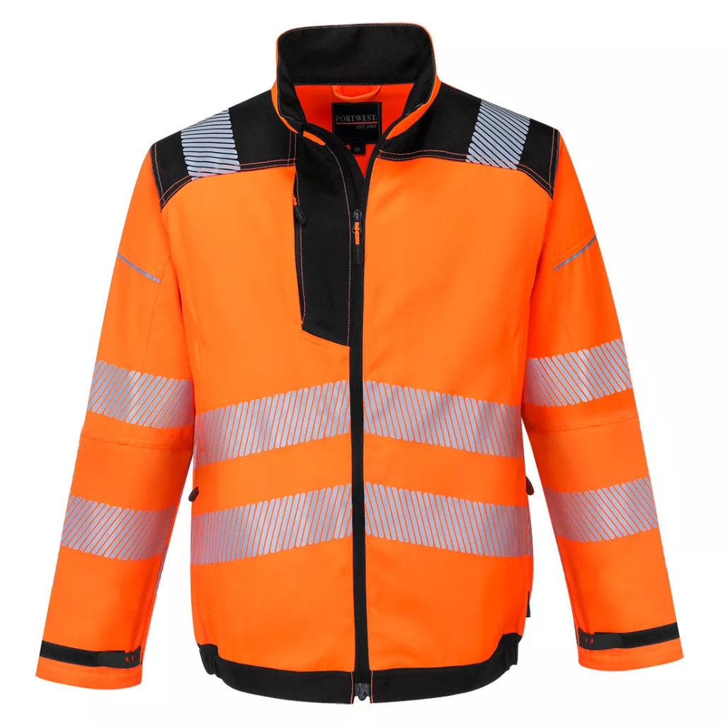 Innovatív modern kialakítású kéttónusú jól láthatósági kabát. Felső zsebe a mai kor okostelefon méretei alapján készült alsó zsebei cipzárral záródnak a nagyobb biztonság érdekében. Kiemelkedő tulajdonságai közé tartozik a fényvisszaverő díszítések a HiVisTex Pro szalag a tépőzárral állítható mandzsetta és a megerősített dupla varrások.Kontraszt panelek, Fényvisszaverő szalag, Tépőzáras állítható mandzsetta , Telefontartó zseb, Oldalt gumírozott derék, Poliészter/Pamut Texpel szövet, 3 zseb, Kontraszt ezüst cipzár, Biztonságos cipzáras zseb, Ezee cipzár. Ez a kialakítás segíti a felhasználó hatékony munkáját.