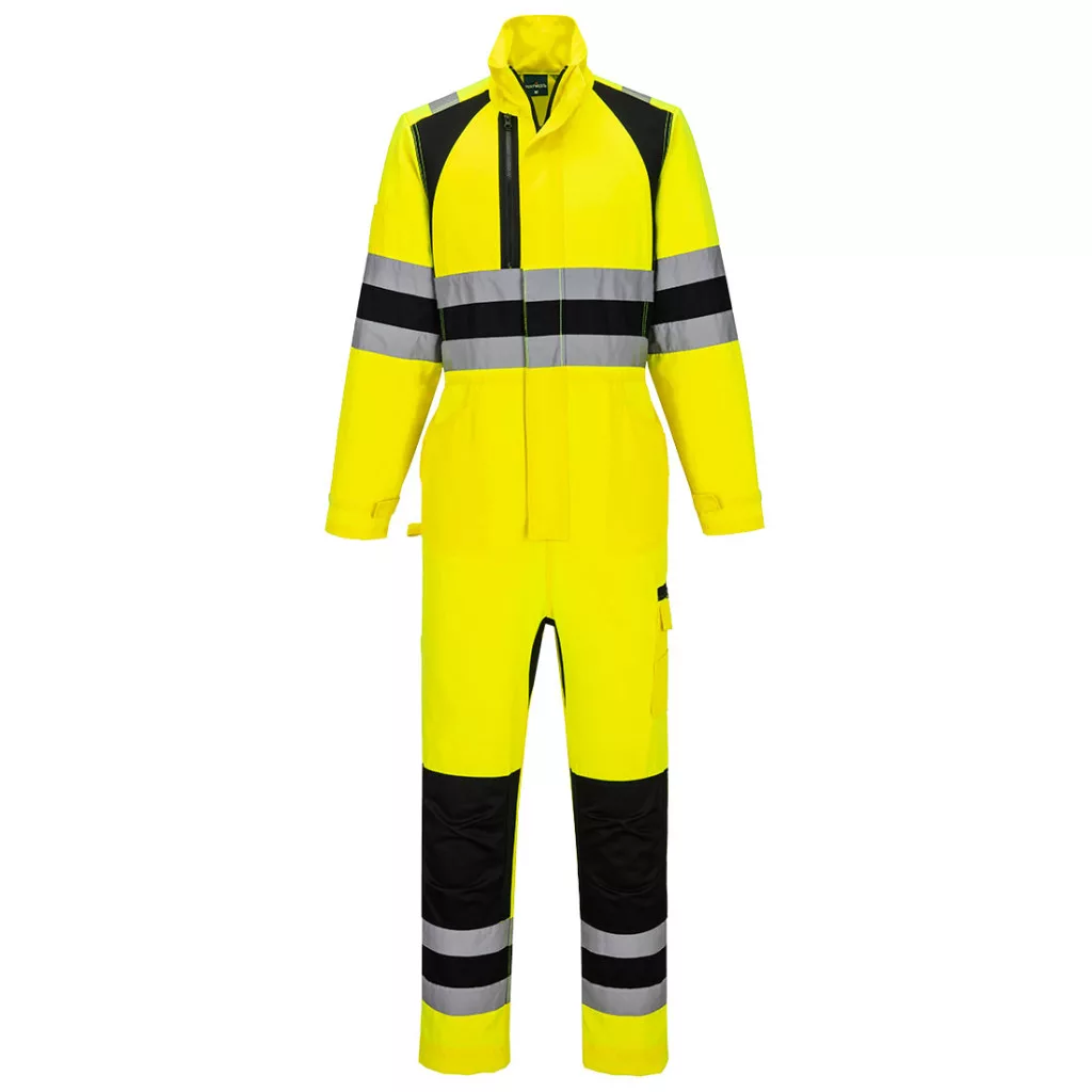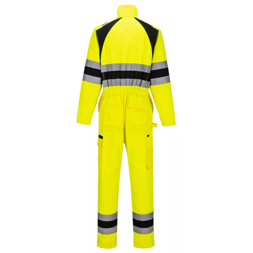 Tanúsítottan újrahasznosított anyagból készült jól láthatósági overál, amely Texpel Stain Eco prémium minőségű foltálló bevonattal (taszítja a szennyeződéseket és a vizet), a kulcs fontosságú részeken innovatív rugalmas panelekkel, 2 oldalsó zsebbel, a mellkason cipzáras zsebbel, dupla szerszámtartó zsebbel, 2 hátsó zsebbel, viharlebenyes elülső résszel, normál és hosszú szár között állítható szegéllyel, félig gumírozott derékkialakítással, 12 sokoldalú praktikus tárolózsebbel, rádióhurokkal, az EN ISO 20471 szabvány szerint 50 mosásra minősítéssel, alulról betölthető térdpárna zsebekkel, kétutas cipzárral és CE minősítéssel rendelkezik.