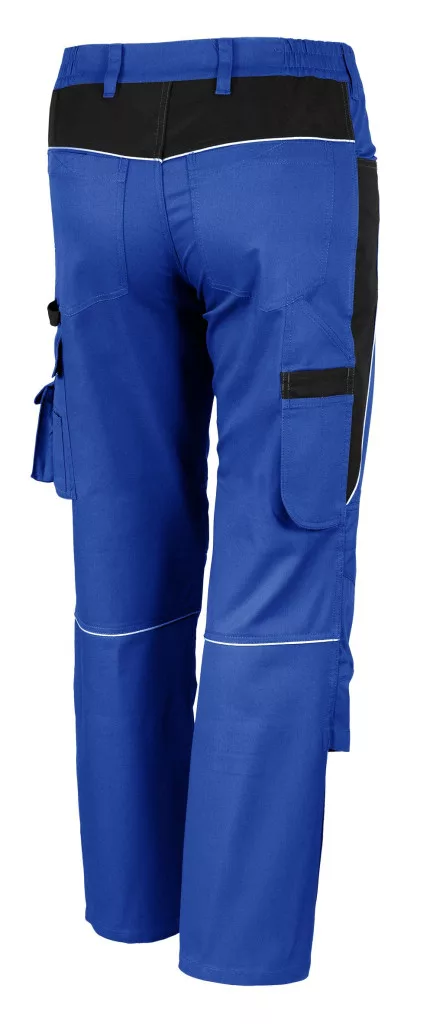 Derékrész hat bújtató füllel. Oldalanként bedolgozott gumipánttal. Két rátűzött oldalzseb és két tépőzáras farzsebbel. Jobb oldalon szerszám- és vonalzó taró zseb, bal oldalon tépőzárral záródó zseb, mobiltelefon és szerszámtartó füllel, tépőzárral állítható. Fém cipzár elöl a sliccnél. Elasztikus betét a térd belső felénél, illetve tépőzárral állítható térdzseb a betétnek. Fényvisszaverő reflexcsíkok hátul és oldalt. Ez a funkció hasznos lehet a napi munkavégzés során.