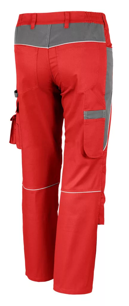 Derékrész hat bújtató füllel. Oldalanként bedolgozott gumipánttal. Két rátűzött oldalzseb és két tépőzáras farzsebbel. Jobb oldalon szerszám- és vonalzó taró zseb, bal oldalon tépőzárral záródó zseb, mobiltelefon és szerszámtartó füllel, tépőzárral állítható. Fém cipzár elöl a sliccnél. Elasztikus betét a térd belső felénél, illetve tépőzárral állítható térdzseb a betétnek. Fényvisszaverő reflexcsíkok hátul és oldalt. Ez a funkció hasznos lehet a napi munkavégzés során.