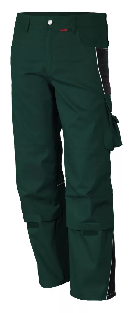 Derékrész hat bújtató füllel. Oldalanként bedolgozott gumipánttal. Két rátűzött oldalzseb és két tépőzáras farzsebbel. Jobb oldalon szerszám- és vonalzó taró zseb, bal oldalon tépőzárral záródó zseb, mobiltelefon és szerszámtartó füllel, tépőzárral állítható. Fém cipzár elöl a sliccnél. Elasztikus betét a térd belső felénél, illetve tépőzárral állítható térdzseb a betétnek. Fényvisszaverő reflexcsíkok hátul és oldalt. Ez a funkció hasznos lehet a napi munkavégzés során.