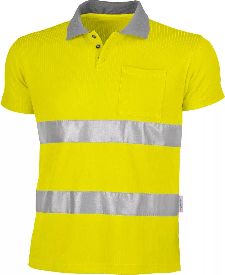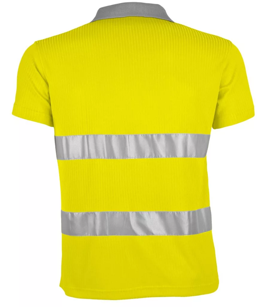 Minőségi Poliészter/viszkóz anyagok kombinációja, magas szintű kényelmi viselet, nedvszívó, lélegző és páraszabályzó kialakítás. Reflexcsíkok: 3M-8910, 6 cm széles. Szürke bordázott gallér. 3-as gombsor, fekete gombokkal. ¼ karhossz mandzsetta nélkül. 2 Reflexcsík (fényvisszaverő) a derékon.