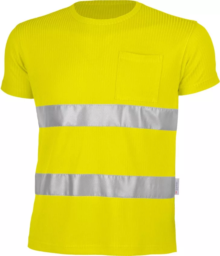 Minőségi Poliészter/viszkóz anyagok kombinációja, magas szintű kényelmi viselet, nedvszívó, lélegző és páraszabályzó kialakítás. Reflexcsíkok: 3M-8910, 6 cm széles. Környakas kialakítás. 2 Reflexcsík (fényvisszaverő) a derékon.