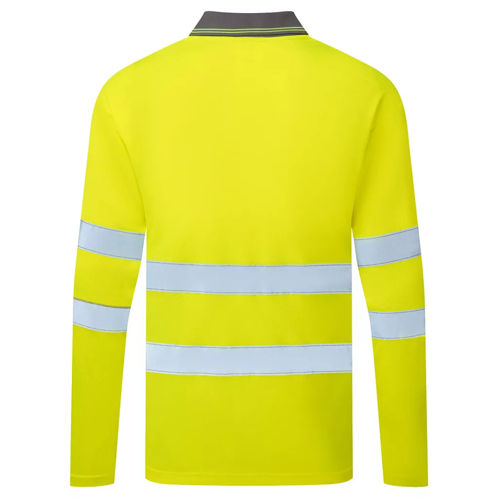 Minőségi, nedvszívó és égáteresztő anyaggal, bő kialakítással, fényvisszaverő szalaggal, 40+ UPF minősítésű alapanyaggal (az UV-sugarak 98%-át blokkolja), az EN ISO 20471 szabvány szerint 50 mosásra minősítéssel és CE minősítéssel rendelkező hosszú ujjú jól láthatósági galléros póló, amely megfelel a RIS 3279-TOM vasúti szabványnak (csak a narancs szín!).