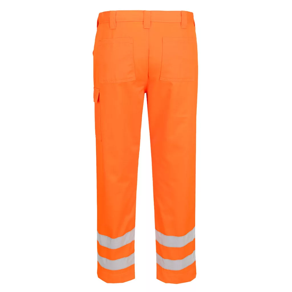 Tartós poliészter/pamut szövet anyaggal, Texpel Stain Eco prémium minőségű foltálló bevonattal (taszítja a szennyeződéseket és a vizet), háromszoros varrásokkal, két oldalsó zsebbel, könnyű hozzáférést biztosító tárolózsebbel, két hátsózsebbel, minden fontos helyen megerősítéssel, fényvisszaverő szalaggal, 5 sokoldalú praktikus tárolózsebbel, 40+ UPF minősítésű alapanyaggal (az UV-sugarak 98%-át blokkolja), az EN ISO 20471 szabvány szerint 50 mosásra minősítéssel és CE minősítéssel rendelkező jól láthatósági nadrág, amely megfelel a RIS 3279-TOM vasúti szabványnak (csak a narancs szín!).